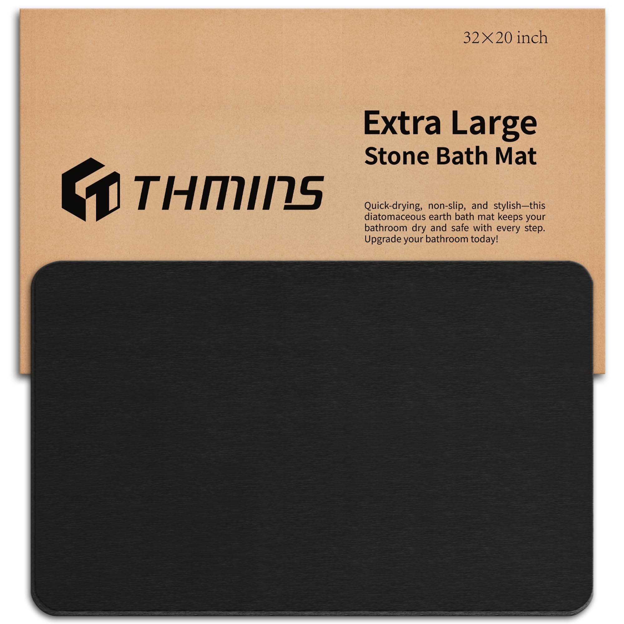 Thmins Extra Large Stone Bath Mat | Black | 32”×20”